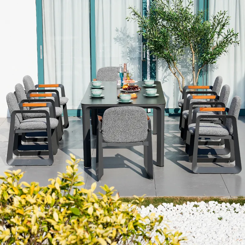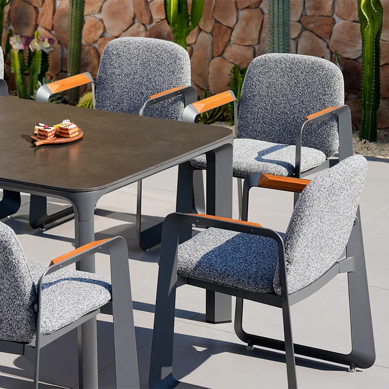 Thickened & Stable: 1.5mm thickened aluminum tubes (30% thicker than ordinary outdoor chair frames) support up to 150kg per chair—no wobbling when leaning back or shifting positions. The silver-gray matte finish hides minor scratches (easier to maintain than glossy frames).
