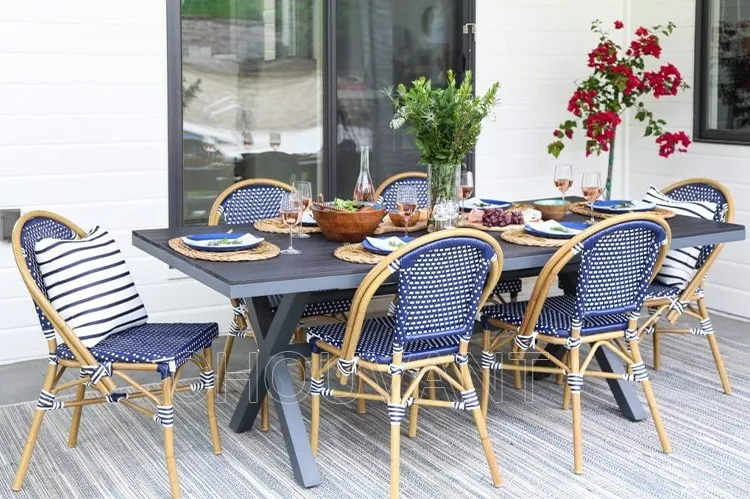 Combines French romantic elements with natural charm, featuring soft curves and light-toned rattan surfaces to create a relaxed, cozy bistro ambiance.